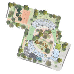 L’école s’insère dans un maillage vert riche et très arboré, en particulier dans la continuité du parc communal situé au nord-est du site. Une relation privilégiée qui participe à intégrer l’école dans le poumon vert du quartier. Ainsi, les abords du site sont dessinés pour prolonger cette trame verte grâce à des parcours piétons.